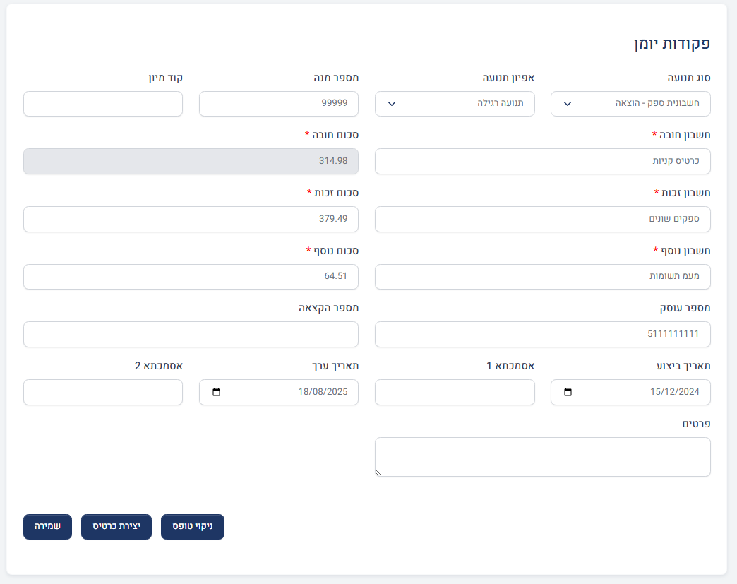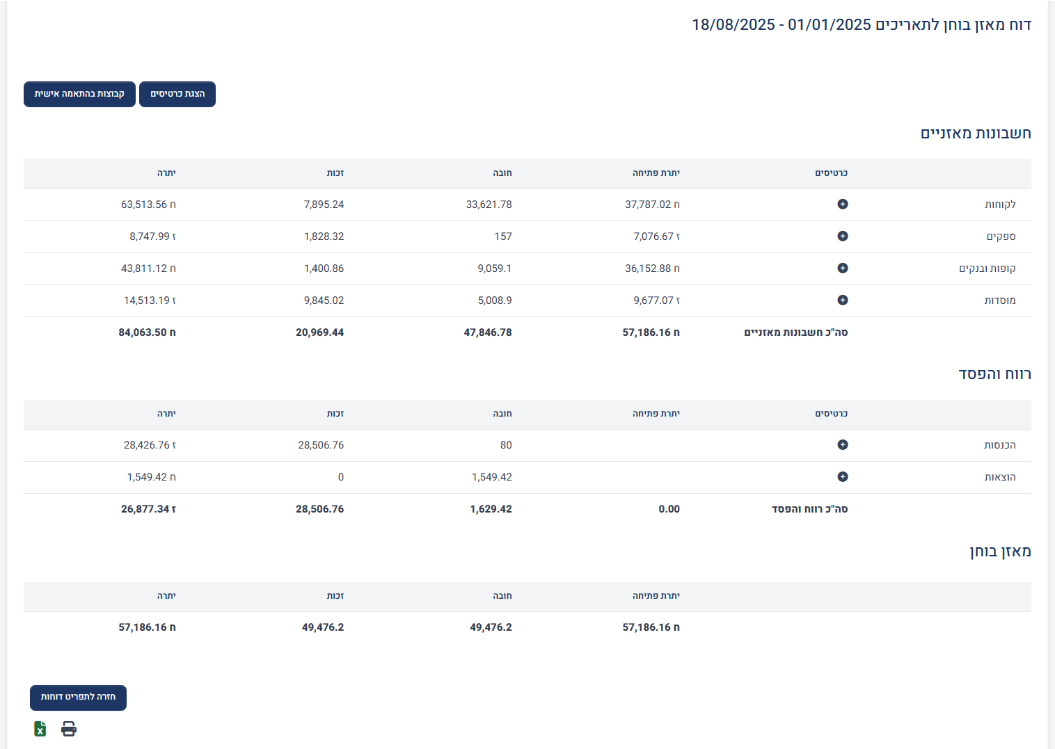 התאמות בנק, ספר קופה, הפקדת שיקים, דוחות פיננסים כולל מאזן בוחן